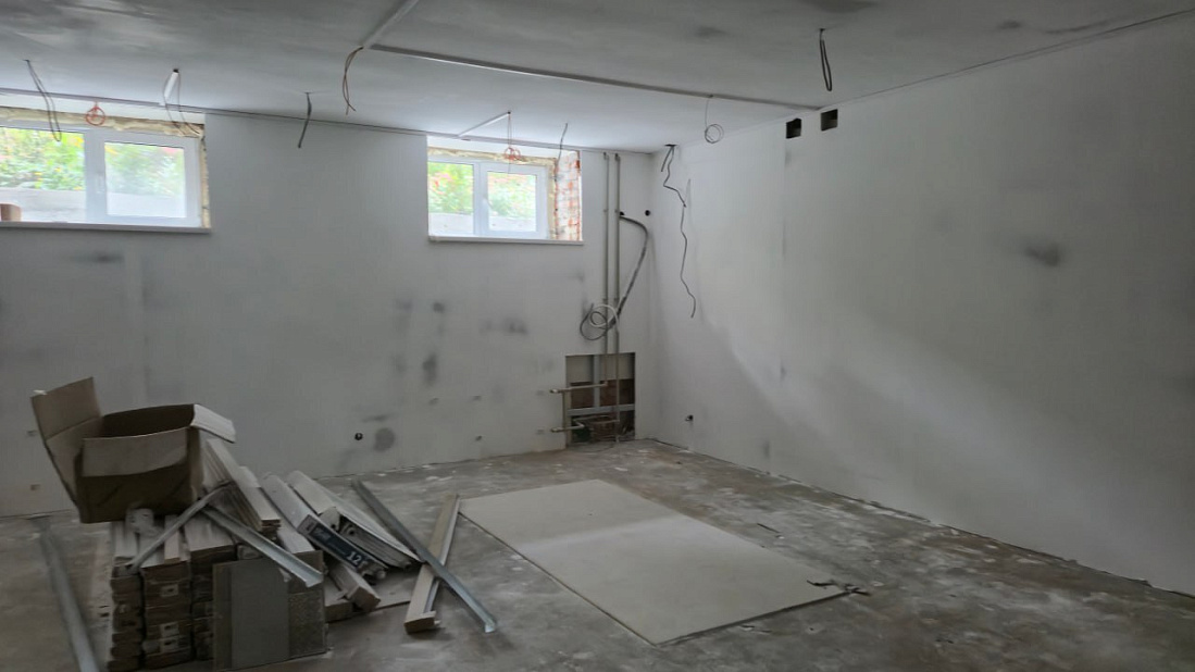 На сегодняшний день проведена работа: полы готовы к укладке материала (керамическая плитка, линолеум, ламинат), стены готовы к покраске, проложены сети связи, интернета, пожарной и охранной сигнализации, видеонаблюдения.
